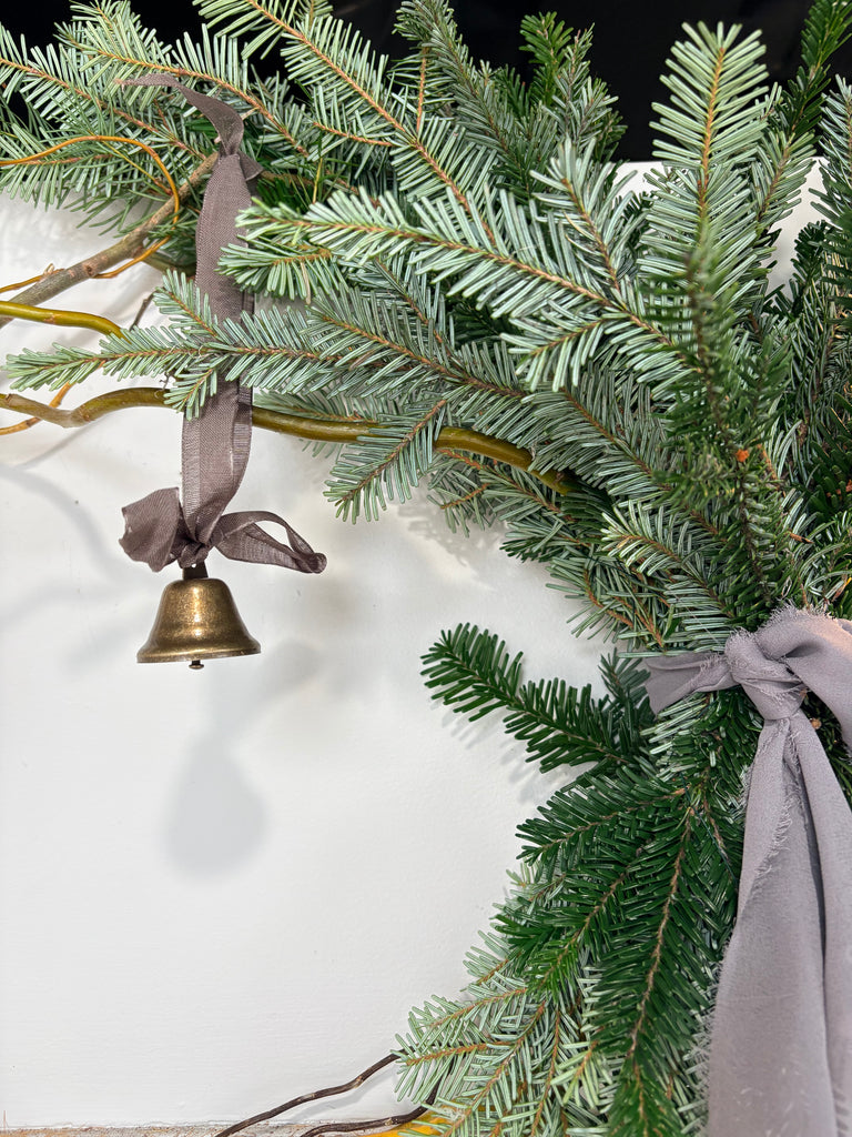 A sheer brown ribbon and a small bell complete the look, adding a charming and festive touch. Perfect for hanging on doors, walls, or above mantels, this wreath will create a warm and welcoming atmosphere during the holiday season.